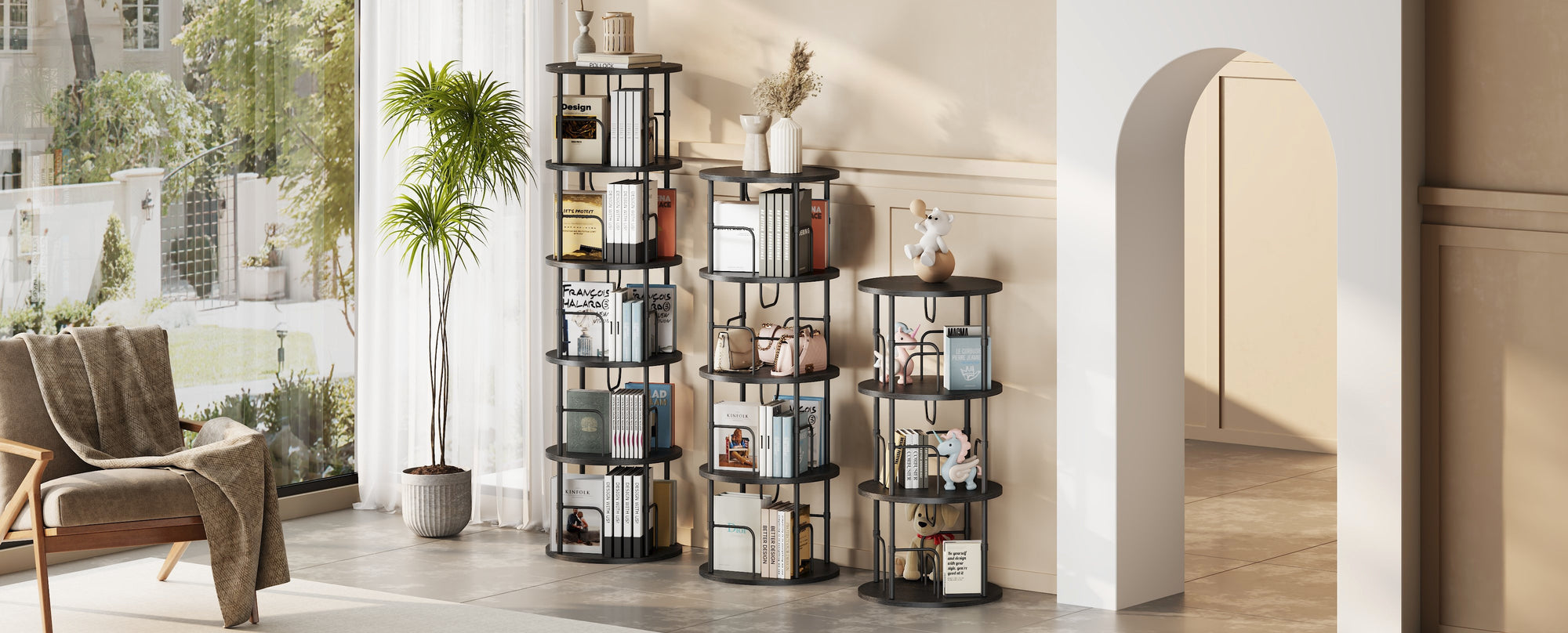 Smooth 360° Rotating BookshelfFlycity tall spinning bookshelf is equipped with a turnplate on the bottom,can rotate 360 degrees freely. With a gent...