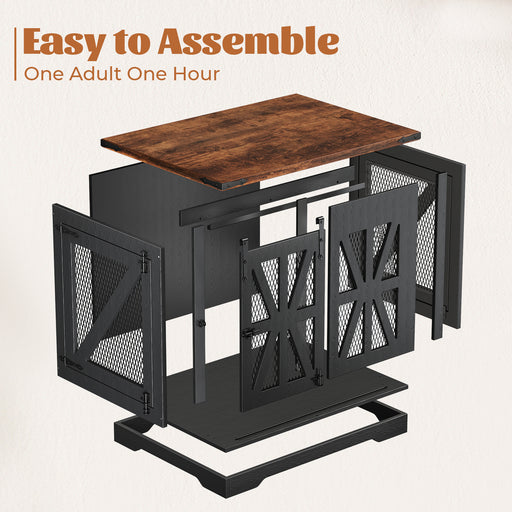 View full detailsFlycity 39.4" Farmhouse Dog Crate Furniture With Sliding Door, Heavy Duty Dog Crate For Small Medium Dogs, Wooden Dog Kennel Indoor With 3 Doors, Decorative Pet House End Table For Living Room, Black