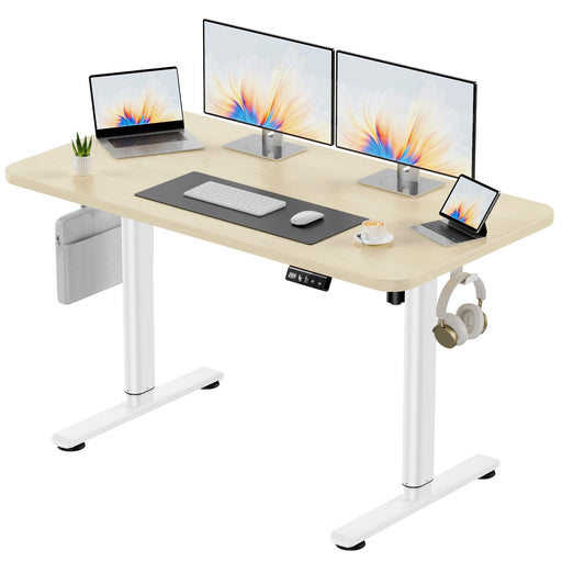 The adjustable desk has a 48-by-24-inch desktop, providing ample space for monitors, laptops and office supplies. Its seamless panel design makes the surface flat, smooth, waterproof and easy to clean, keeping the workspace tidy.