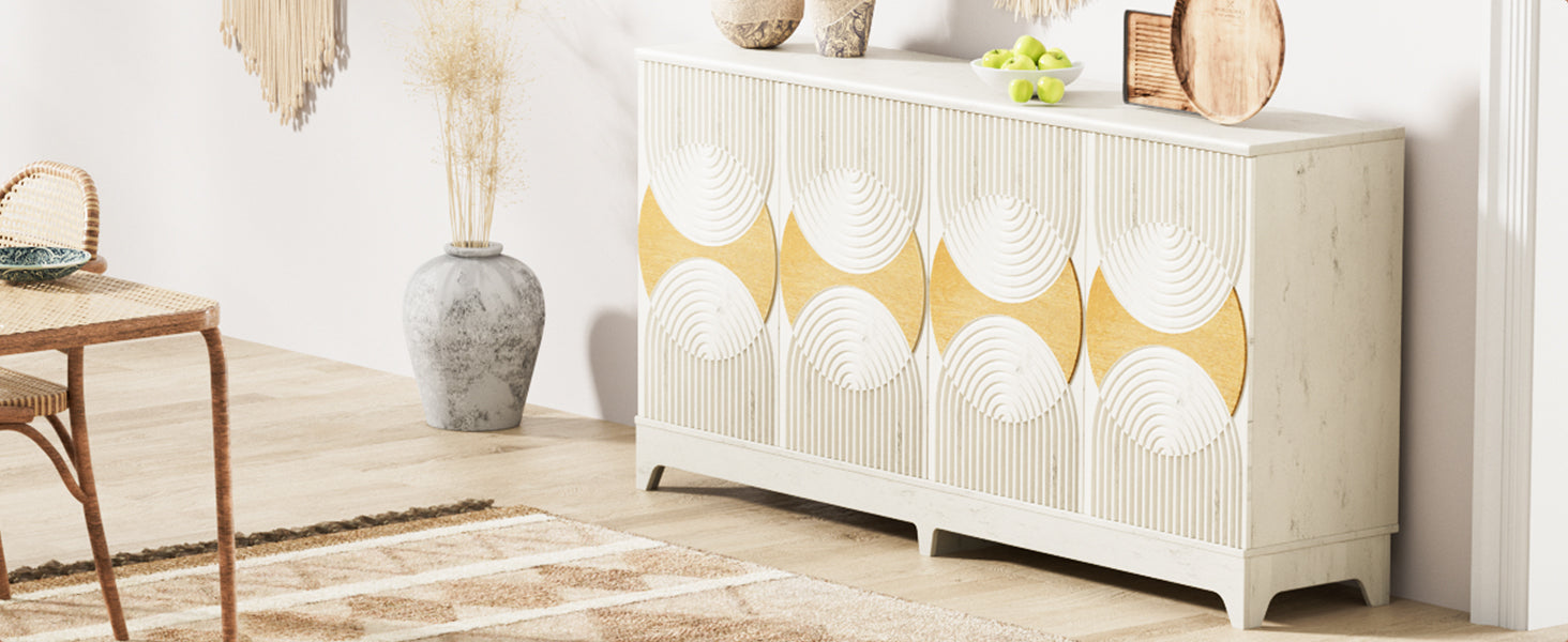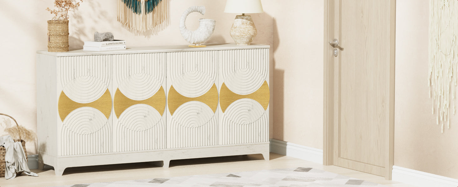 Flycity Sideboard Buffet Cabinet with Storage - 70'' Antique White