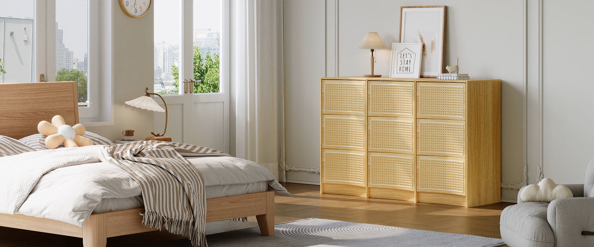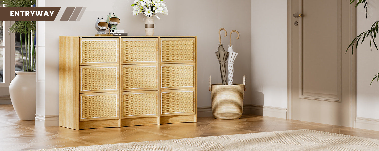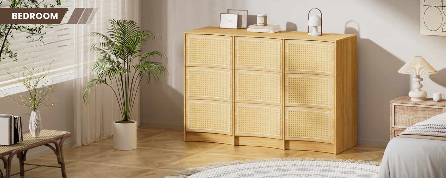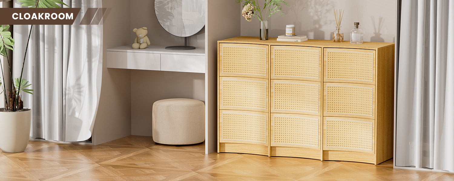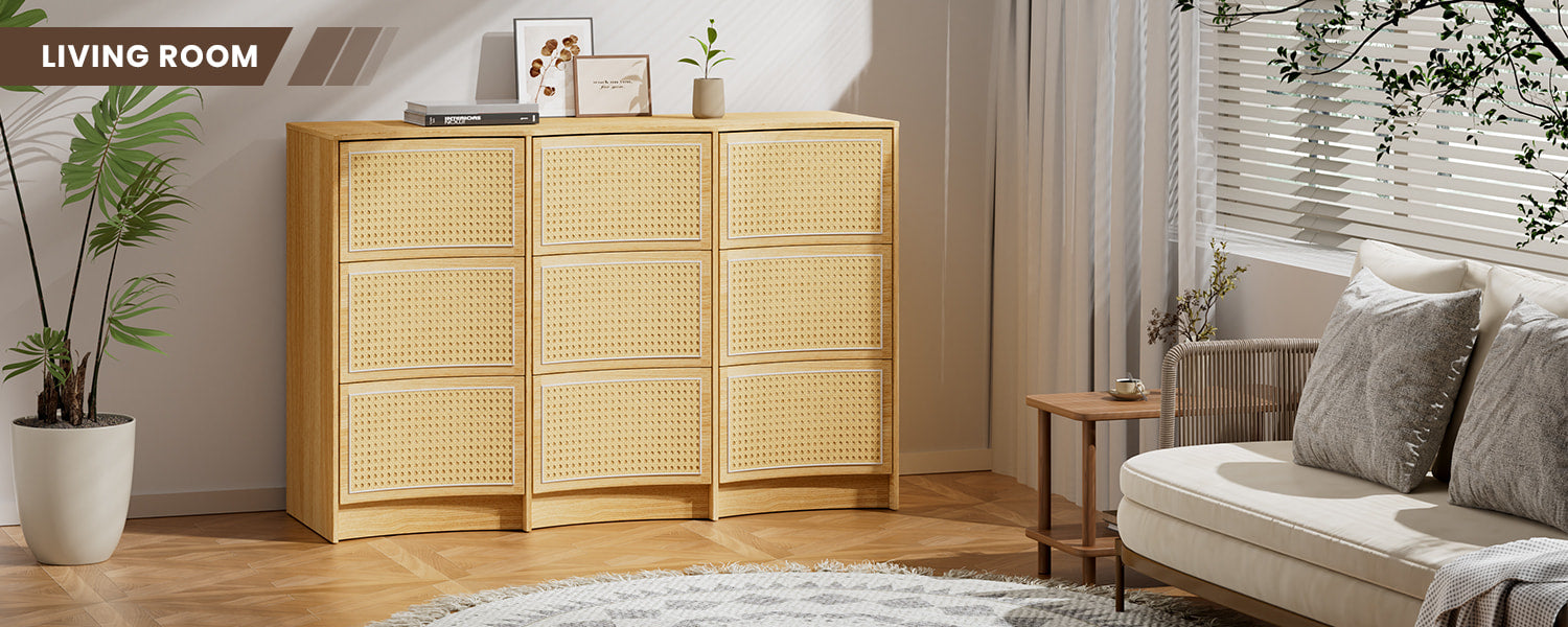 Flycity Rattan 9 Drawer Dresser with Handle-Free Design
