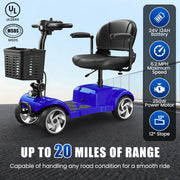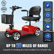4 Wheel Electric Mobility Scooter With 30 Miles Long Range & Basket