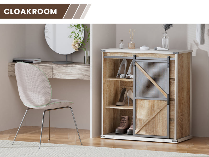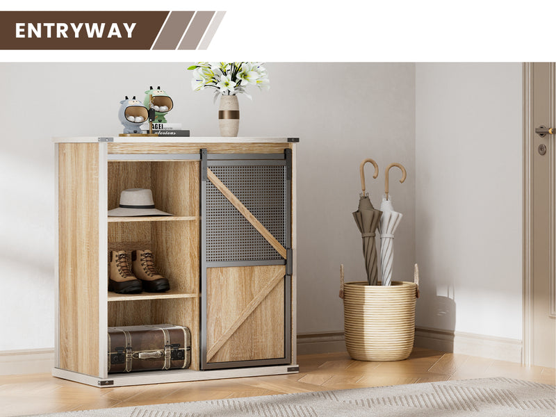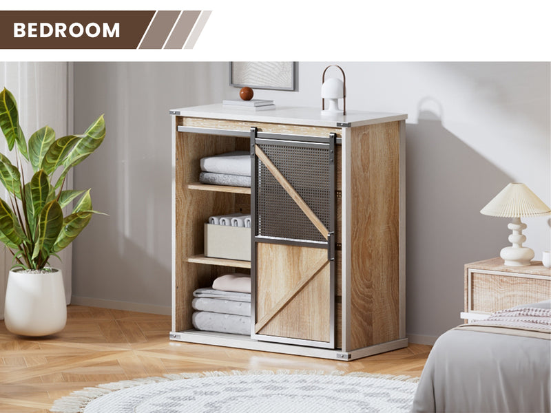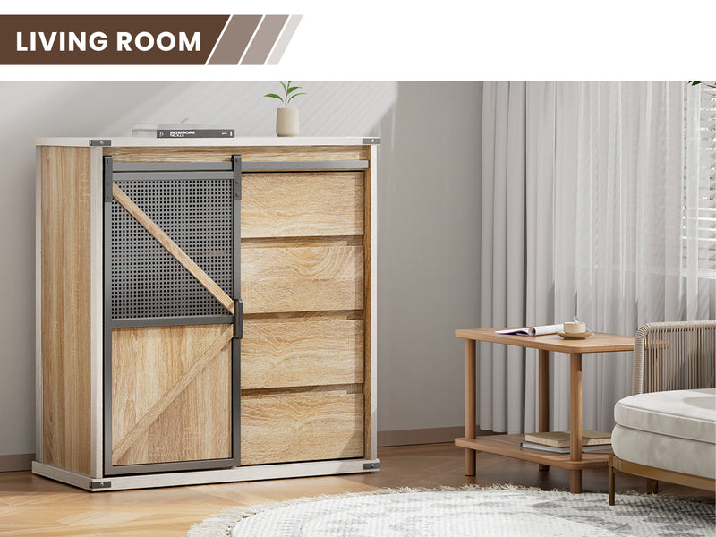 Flycity Farmhouse Wood Dresser 4 Drawer with Sliding Barn Door